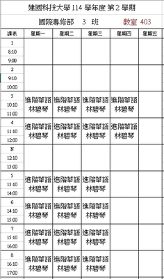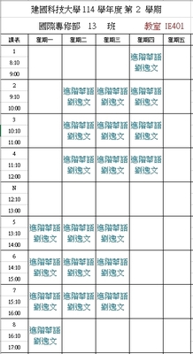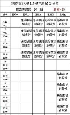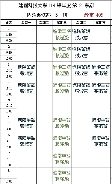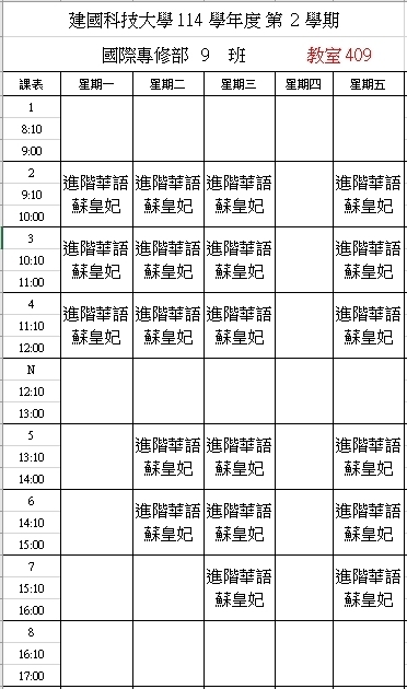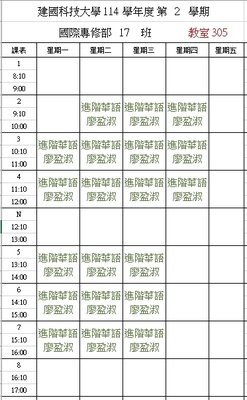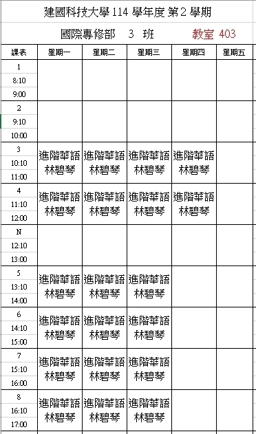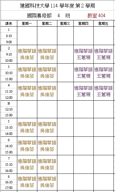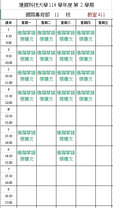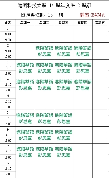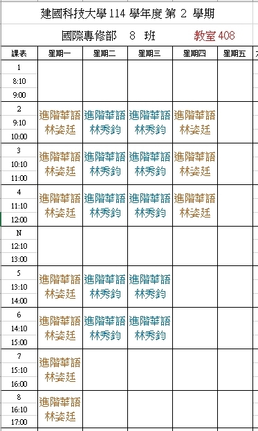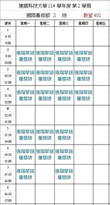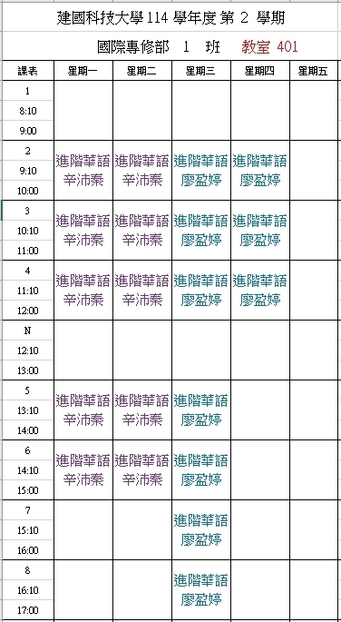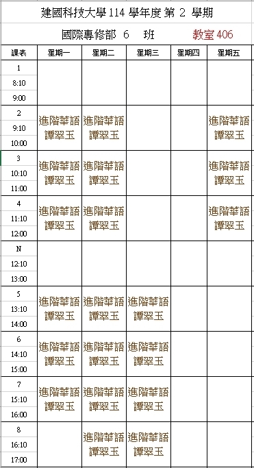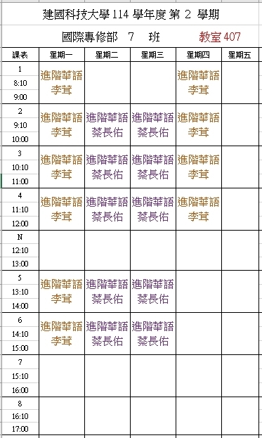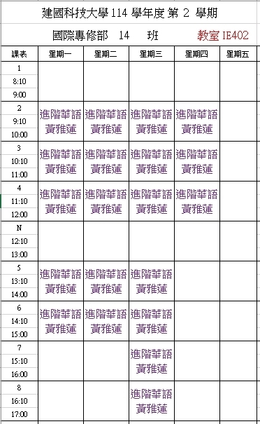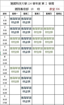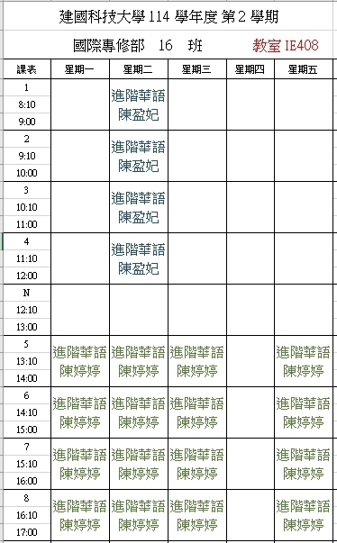 【IFP】1142華語先修各班課表